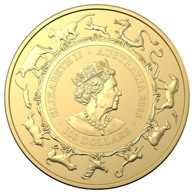 Die Royal Australian Mint (RAM) verausgabt 2023 diese 1 Oz schwere Investment Goldmünze aus 9999er Feingold mit dem Motiv zum Jahr des Hasen. Die Auflage ist auf 5.000 Stück weltweit streng limitiert.