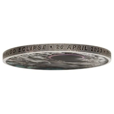 Diese aufwendig gestaltete 2 Oz Feinsilbermünze in Antik Finish Color zeigt das Ereignis der totalen Sonnenfinsternis 2023 über der Touristenstadt Exmouth und dem nahe gelegenen Ningaloo Reef, das zum Weltkulturerbe gehört und an der Nordwestküste Westaustraliens liegt. Die hochwertige Prägung zeigt sich unter anderem in einer selten zu findenden Kantenbeschriftung sowie der umfangreichen Colorierung.