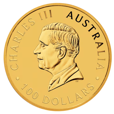 Das 2024er Gold Känguru in der Größe 1 Oz Feingold, in der Prägequalität Stempelglanz mit einem Nennwert von 100 Australischen Dollar.