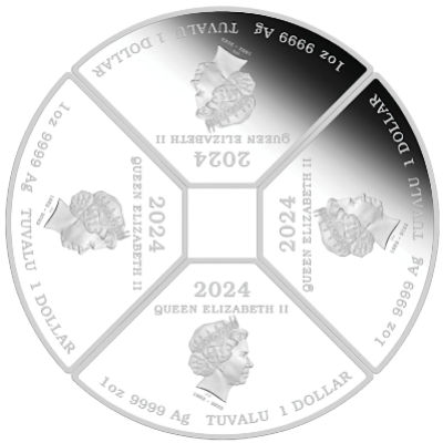 <<< Tuvalu - 4 TVD Lunar Drache Quadrant Set 2024 - 4 * 1 Oz Silber | |