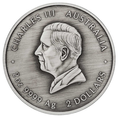 Beschreibung zur Münze: Kevin Bynder Kookaburra Silbermünze - Dritte MünzserieDie dritte Münzserie des führenden west-australischen Indigenen Künstlers Kevin Bynder zeigt sein originales, farbiges Gemälde eines Kookaburras. Geprägt aus 2 Unzen antikem Feinsilber, feiert diese besondere Münze den ikonischen Vogel, der den Nyoongar als „kaa kaa“ bekannt ist. Wichtige Merkmale
