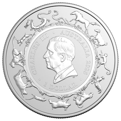 Die Royal Australian Mint (RAM) verausgabt 2025 diese 1 Oz schwere Investment Silbermünze aus 999er Feinsilber mit dem Motiv zum Jahr der Schlange. Die Auflage ist auf 50.000 Stück weltweit streng limitiert. Die Münzen sind einzeln gekapselt.