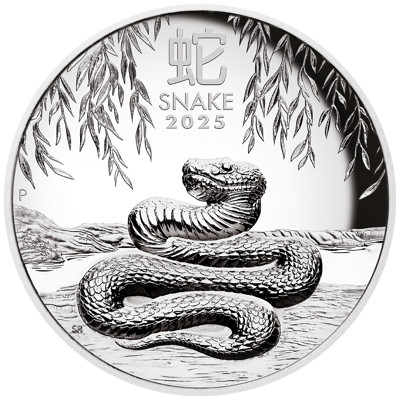 Diese 1 Oz Feinsilberausgabe aus der Lunar III Serie kommt in Polierter Platte mit High Relief Prägung und ist dem Jahr der Schlange gewidmet.