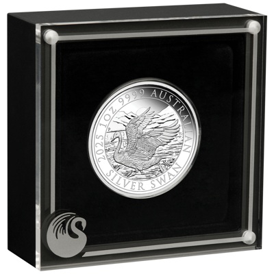 Mit dem Motiv des Schwans (Swan) der zudem auch das im Logo der The PerthMint Australia enthalten ist, startet eine neue Anlagemünzenserie in 1 Oz Feinsilber. Die Serie soll jährlich mit wechselndem Motiv erscheinen und kommt in der hohen Silberreinheit von 999,9% und jede Münze ist zudem einzeln gekapselt. Die Auslieferung erfolgt wie beim Kookaburra, Koala oder der Lunarserie zu 20 Stück als Rolle verschweißt, 5 Rollen im Karton zu 100 Stück. Die weltweit limitierte Auflage beträgt von der Erstausgabe lediglich 25.000 Stück!