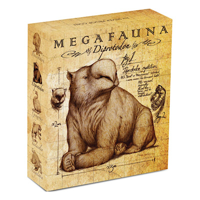 2013 startet eine neue fünfteilige Serie von der Perth Mint Australia zum Thema Megafauna. Präsentiert werden 5 australische Tierarten aus dieser Zeitepoche. Die Münzen kommen in höchster Prägequalität polierte Platte und sind zudem aufwendig coloriert. Die Münzen sind jeweils auf nur 6.500 Stück weltweit limitiert und kommen in einer extra für diese Serie gestalteten Umverpackung mit Original-Etui und nummeriertem Echtheitszertifikat. Für die Münzen paßt auch das Perth Mint Australia Kunststoffdisplay in das alle 5 Münzen nebeneinander eingelegt werden können.