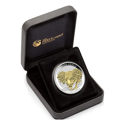 Die 2014er Ausgabe des Silber Koala hochwertig mit 24 Karat Gold vergoldet. Die Auflage ist streng limitiert und kommt im Original Etui mit Umverpackung und nummeriertem Echtheitszertifikat