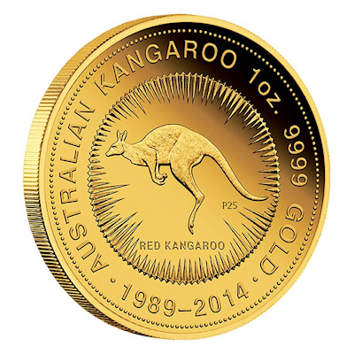 Seit 1986 prägt die Perth Mint Australia das Gold Känguru/Nugget als Goldanlagemünze in unterschiedlichen Stückelungen. Die ersten Ausgaben zeigen noch kein Känguru Motiv sondern das Welcome-Stranger Nugget. Seit 1990 wird die Goldanlagemünze mit unterschiedlichen Känguru Motiven in den Stückelungen 1/20 Oz, 1/10 Oz, 1/4 Oz, 1/2 Oz, 1 Oz, 2 Oz, 10 Oz und 1 KG geprägt. Seit 2010 gibt es ebenfalls ein 0,5 Gramm schweres MiniRoo, das im Blister verkauft wird. Die Rückseite ziert wie bei allen Australischen Münzen das königliche Oberhaupt, die Queen Elisabeth.