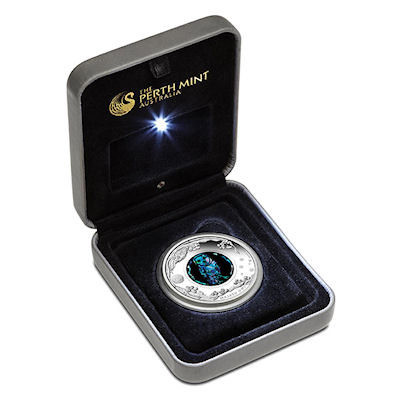 Technische Daten: Ausgabeland: Australien Prägeanstalt: The PerthMint Australia Ausgabejahr: 2014 Nennwert: 1 AUD Material: Silber Gewicht: 31,10300g Durchmesser: 36,60 mm Dicke: 4,50 mm Auflage: 8.000 Stück Prägequalität: Polierte Platte mit echtem Opal Verpackung: Gekapselt im Original-Etui mit Umverpackung und Echtheitszertifikat |