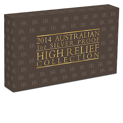 Die 2014er Ausgabe der HighRelief Collection beinhaltet den Koala, den Kookaburra und das Känguru im 2014er Design und in der aufwendigen HighRelief Prägung.