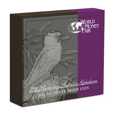 Anlässlich der World Money Fair 2015 (Coin Show Special) wurde von der Perth Mint Australia diese ganz spezielle Kookaburra Münze in Polierter Platte verausgabt. Die Münze kommt im Original-Etui der Perth Mint Australia mit speziell gestalteter Umverpackung. Die Münze besteht aus 1 Oz Feinsilber und ist weltweit auf nur 2.500 Stück limitiert.