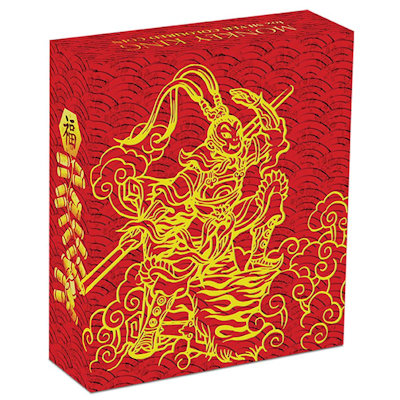 Passend zum Jahr des Affen verausgabt die PerthMint Australia diese wunderschön colorierte Silbermünzenausgabe mit dem Titel Monkey King (Affenkönig). Die Legende des Affenkönigs, Sun Wu Kong, wird im chinesischen Roman Die Reise nach Westen erzählt. Er ist mutig, gewagt, spitzbübisch und rebellisch. Die Ausgabe kommt im Original-Etui mit nummeriertem Echtheitszertifikat und passend gestalteter Umverpackung.
