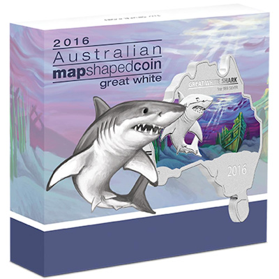 Der Great White Shark (Großer Weißer Hai) ist das Motiv der 9. Ausgabe der australischen Serie Map Shaped Coin Serie. Die Besonderheit der Serie sind die Münzen, die die Form des australischen Kontinents haben. Darüber hinaus sind die Münzen aufwendig coloriert und kommen im Originaletui mit Umverpackung und nummeriertem Echtheitszertifikat. Die Serie ist sehr beliebt und durch die strenge Limitierung auf nur 6.000 Stück pro Ausgabe sind die älteren Ausgaben auch bereits komplett ausverkauft.