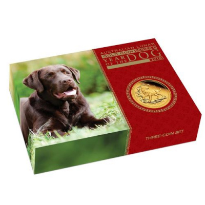 <<< Australien - 140 AUD Lunar II Hund 3-Coin-Set 2018 - 1,35 Oz Gold PP | |
