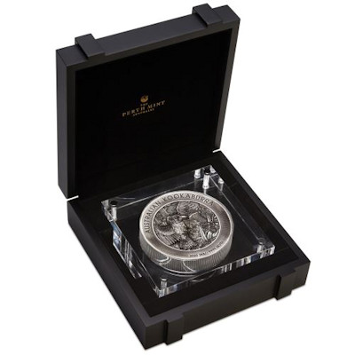 Eine absolute TOP-Neuheit verausgabt die The PerthMint Australia mit dieser wunderschönen Münze. Einen Kookaburra in 2 Kilogramm Feinsilber mit HighRelief Prägung und Antik Finish Veredelung es ist nach dem Koala und Känguru die 3. Münze dieser Serie! Die Münze ist sehr detailreich gestaltet und kommt in einer extra angefertigtem Präsentationsrahmen, der die Münze zugleich perfekt schützt. Bei einer Auflage von nur 200!!! Stück verwundert es nicht, dass die Ausgabe bei der Prägeanstalt bereits komplett ausverkauft ist! Interessierte Sammler sollten daher nicht zulange zögern!