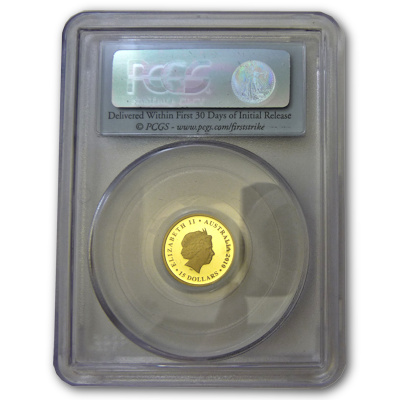 Technische Daten: Ausgabeland: Australien Prägeanstalt: The PerthMint Australia Ausgabejahr: 2010 Nennwert: 15 AUD Material: Gold Gewicht: 3,11030g Durchmesser: 16,10 mm Dicke: 1,50 mm Auflage: 5.000 Stück Prägequalität: Polierte Platte Verpackung: In PCGS Kapsel mit nummeriertem Echtheitszertifikat |