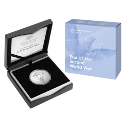 Anlässlich des 75. Jahrestags des Ende des 2. Weltkriegs verausgabt die Royal Australian Mint diese auf nur 3.500 Stück limitierte Gedenkmünze. Die Münze besteht aus 1 Oz Feinsilber in der höchsten Prägequalität Polierte Platte. Die Auslieferung erfolgt im Original-Etui mit Umverpackung und nummeriertem Echtheitszertifikat.