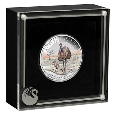 Seit 2018 wird der australische Emu von der The PerthMint Australia geprägt. Die Serie wird als 1 Oz Silber Bullion Münze, sowie als 1 Oz Silber Proof Münze und als 1 Oz Gold Bullion Münze verausgabt. Die Bullionmünzen sind einzeln gekapselt und die silberne Ausgabe in Polierter Platte kommt zudem im Etui mit Umverpackung im Serienmotiv. Das Ausgabeland ist Australien und die Münzen sind natürlich gesetzliches Zahlungsmittel!