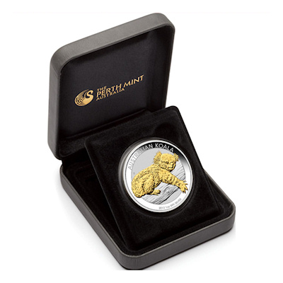 Die 2012er Ausgabe des Silber Koala hochwertig mit 24 Karat Gold vergoldet. Die Auflage ist streng limitiert und kommt im Original Etui mit Umverpackung und nummeriertem Echtheitszertifikat
