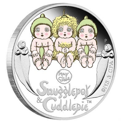 Anlässlich des 100 Jährigen Jubiläums von den Gumnut Babies erscheint diese besonders niedlich gestaltete Ausgabe in 1 Oz Feinsilber, in der höchsten Prägequalität Polierte Platte und zudem coloriert. Snugglepot and Cuddlepie ist eine Bücherserie des australischen Autors May Gibbs. In dieser Ausgabe ist ein Jubiläumsbuch mitenthalten. |