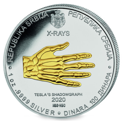 | Serbien - 100 Dinara Nikola Tesla X Ray 2020 - 1 Oz Silber Gilded | ||