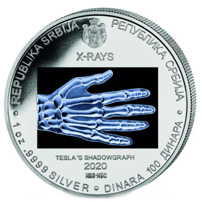 | Serbien - 100 Dinara Nikola Tesla X Ray 2020 - 1 Oz Silber Color | ||