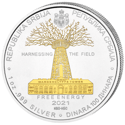 | Serbien - 100 Dinara Nikola Tesla Freie Energie 2021 - 1 Oz Silber Gilded | ||