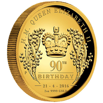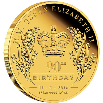 | Australien - 25 AUD 90. Geburtstag Queen Elisabeth 2016 - 1/4 Oz Gold | ||
