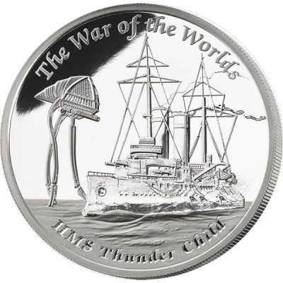 Aus der Serie Berühmte Schiffe die nie gesegelt sind zeigt diese Ausgabe das Motiv der HMS Thunder Child, bekannt aus The War of the World. Die Münze besteht aus 1 Oz Feinsilber in der höchsten Prägequalität Polierte Platte und ist auf nur 3.000 Stück weltweit streng limitiert. Die Auslieferung erfolgt einzeln gekapselt. |