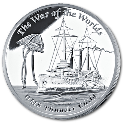 Diese 1 Oz schwere Feinsilbermünze in der höchsten Prägequalität Polierte Platte wurde zum Gedenken an H.G. Wells Krieg der Welten (The War of the Worlds) verausgabt und zeigt ein Kriegsgefährt der Angreifer sowie die HMS Thunder Child. Die Auslieferung erfolgt Gekapselt mit Echtheitszertifikat. |