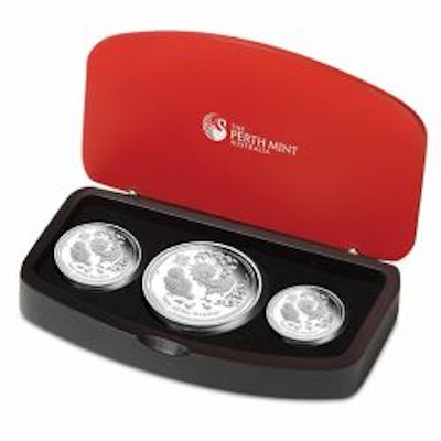 | Australien - 3,5 AUD Lunar II Hahn 3-Coin-Set 2017 - 3,5 Oz Silber | ||