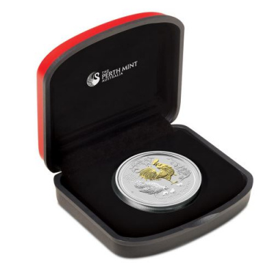 Der Lunar II Hahn in 1 Oz Feinsilber, stempelglanz, hochwertig 24-Karat vergoldet sowie gekapselt in der Originalkapsel und mit nummeriertem Echtheitszertifikat! Version ohne Etui und Box! |