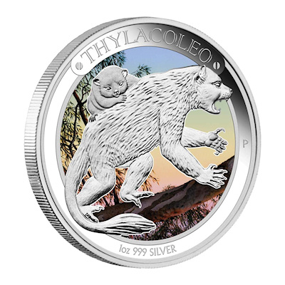 | Australien - 1 AUD Megafauna Thylacoleo - 1 Oz Silber PP Color | ||