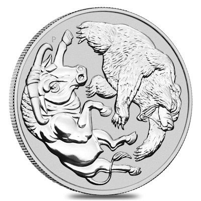 Diese neue Anlagemünze der The PerthMint Australia zeigt das Motiv Bullen&Bären (Bull&Bear) und ist aus reinstem 9999er Feinsilber geprägt. Die Münze hat ein Gewicht von 1 KG Silber und wird einzeln gekapselt ausgeliefert. Von dieser schönen Anlagemünze mit Sammlerwert werden lediglich 500 Stück weltweit verausgabt! |