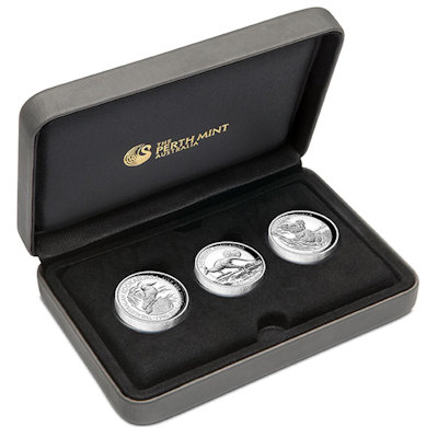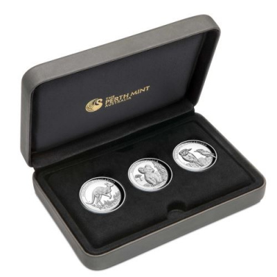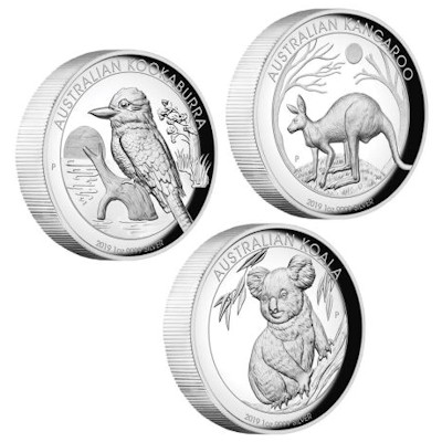 Die 2019er Ausgabe der HighRelief Collection beinhaltet die Silbermünzen mit den Motiven Koala, den Kookaburra und das Känguru im 2018er Design und in der aufwendigen HighRelief Prägung. |