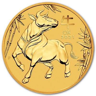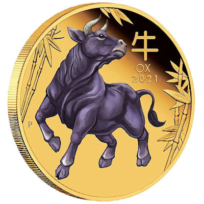 Es handelt sich hier um die 2021er Ausgabe zum Jahr des Ochsen aus der Lunar III Serie in 1/2 Oz Feingold und original gekapselt von der PerthMint Australia. |