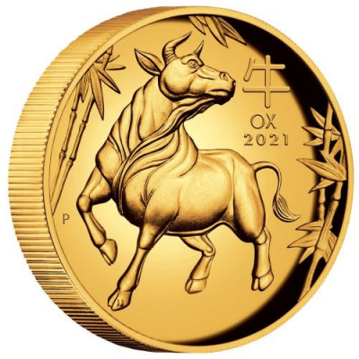 Es handelt sich hier um die 2021er Ausgabe zum Jahr des Ochsen aus der Lunar III Serie in 1/20 Oz Feingold und original gekapselt von der PerthMint Australia. |