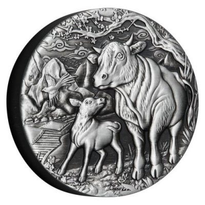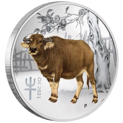 Es handelt sich hier um die 2021er Ausgabe zum Jahr des Ochsen aus der Lunar III Serie als 1 Kilogramm schwere Feinsilbermünze, original gekapselt von der The PerthMint Australia. |