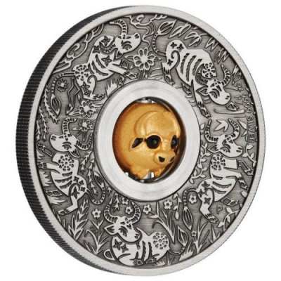 | Australien - 1 AUD Lunar III Ochse - 1 Oz Silber AntikFinish Rotating Charm | ||