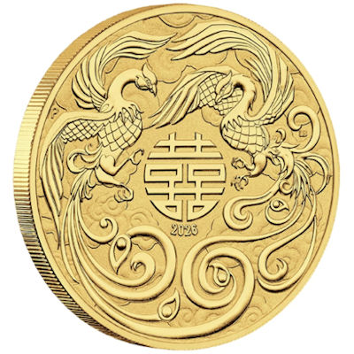 Symbol für Liebe und Harmonie: Double Phoenix 2025In der chinesischen Mythologie stehen zwei gemeinsam erscheinende Phönixe für ein harmonisches Paar und das Sprichwort „Gutes kommt im Doppelpack“. Die 1 oz Goldmünze 2026 aus der renommierten Serie Chinese Myths & Legends ehrt dieses kraftvolle Symbol von Liebe und Einheit. Detailreiches Motiv mit doppeltem GlückDie Münze zeigt zwei kunstvoll gestaltete, gefiederte Fabelwesen – bekannt als Luan und Feng – die sich liebevoll gegenüberstehen. Zwischen ihnen befindet sich das chinesische Schriftzeichen für „doppeltes Glück“, umgeben von stilisierten Wolkenformen. Abgerundet wird das Design durch das Prägejahr 2026 und das traditionelle „P“-Prägezeichen der Perth Mint. |