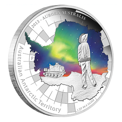 | Australien - 1 AUD Antarctic Territory Aurora 2013 - 1 Oz Silber | ||