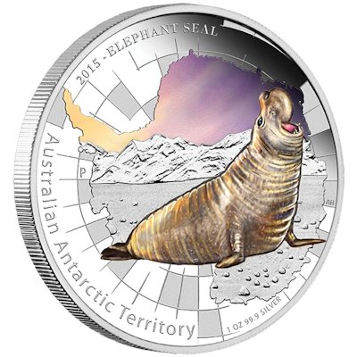 Die 2015er Ausgabe aus der beliebten Serie Antarctic Territory widmet sich dem See-Elefant (Elephant Seal). Es ist bereits die 12. Ausgabe dieser jährlich erscheinenden Serie. Die Münze kommt im typischen Seriendesign und ist aufwendig coloriert. Die Ausgabe ist auf lediglich 7.500 Stück weltweit limitiert. |