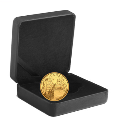 MÜNZE #1! Unsere neue jährliche Serie von 200-Dollar-Münzen aus reinem Gold ist eine sammelbare Ode an Kanadas Goldenes Segelzeitalter. Jede Ausgabe bringt einen anderen Typ von Großsegler in den Vordergrund, beginnend mit der auf dieser Münze hervorgehobenen Brigantine. Die Brigantine, das Rückgrat der kanadischen Marineindustrie im 19. Jahrhundert, war das vielseitige Arbeitstier, das die Küstenhandelsrouten befuhr und auf hoher See segelte. Dieser Großsegler zeichnet sich durch einen vollständig quadratgetakelten Vormast und ein Längssegel aus – eine Kombination, die das Manövrieren in Flüssen und entlang unserer Ostküste erleichtert, wo die geschäftigen Werften, Häfen und Häfen uns mit der Welt verbanden.