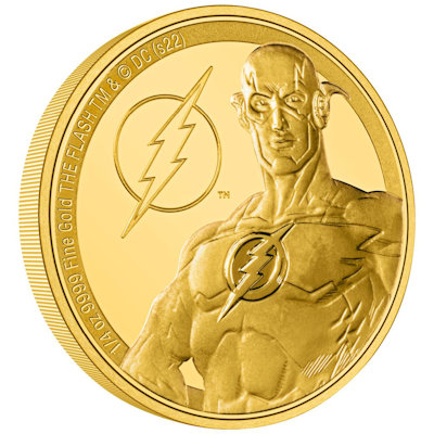<<< Niue - 25 NZD Classic Superheroes (2.) The Flash(TM) 2022 - 1/4 Oz Gold PP | |