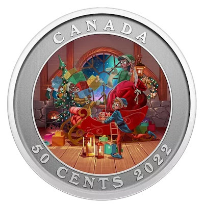 | <<< Kanada - 50 Cent Der Schlitten von Santa Claus 2022 - Sammlermünze | |
