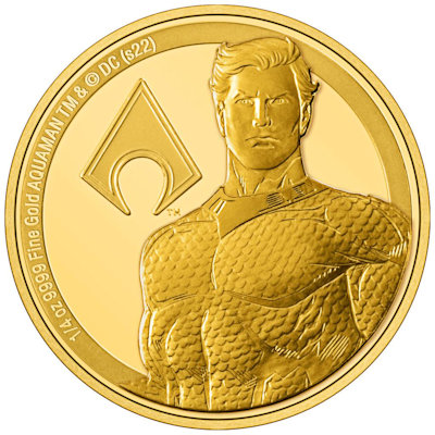 <<< Niue - 25 NZD Classic Superheroes (3.) Aquaman(TM) 2022 - 1/4 Oz Gold PP | |