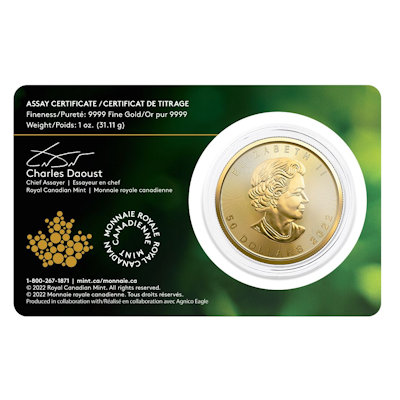 <<< Kanada - 50 CAD Maple Leaf Single Mine 2022 - 1 Oz Gold Privy Blister | |