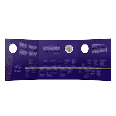Während ihrer langen Regentschaft stattete Königin Elizabeth II. Kanada 22 offizielle Besuche ab, öfter als jede andere Commonwealth-Nation. Diese Reisen brachten The Queen in alle Provinzen und Territorien, wo sie, wiedervereint mit ihrer kanadischen Familie, an einigen unserer größten Feierlichkeiten und Meilensteine teilnahm. Diese Feinsilbermünze erinnert an das Vermächtnis von Queen Elizabeth II. Umgeben von gravierten Ahornblättern zeigt die Rückseite der Münze das Farbporträt, das während ihrer letzten kanadischen Heimkehr im Jahr 2010 aufgenommen wurde. Ein königliches Porträt und Vermächtnis in 99,99 % reinem Silber. Besondere Merkmale - Eine Hommage an die man sich erinnert. Unsere preisgünstigste Hommage aus Feinsilber an Königin Elizabeth II. am Ende ihrer historischen Herrschaft. - Doppelt datiert. Die Vorderseite ist ebenfalls doppelt datiert, um an die historische Herrschaft von Königin Elizabeth II. zu erinnern und diesen Moment zu markieren. - Spezielle Verpackung. Ihre Münze wird in einer illustrierten Geschenkkartenmappe geliefert, die eine Zeitleiste der offiziellen Besuche von Königin Elizabeth II. in Kanada während ihrer 70-jährigen Regierungszeit enthält. - Eine einzigartige kanadische Hommage. Neben der Teilansicht der kanadischen Insignien von Königin Elizabeth II. enthält die Rückseite Ahornblätter, die die besondere Beziehung dieser Nation zur Königin darstellen. Verpackung Ihre Münze ist eingekapselt und in einer illustrierten Geschenkkartenmappe verpackt, die eine Zeitleiste der offiziellen Besuche von Queen Elizabeth II in Kanada enthält. Technische Daten: Ausgabeland: Kanada Prägeanstalt: Royal Canadian Mint Ausgabejahr: 2022 Nennwert: 5 CAD Dollar Material: Silber Gewicht: 7,96000g Durchmesser: 27,00 mm Prägequalität: Polierte Platte, coloriert Verpackung: Im Original-Blister verpackt |