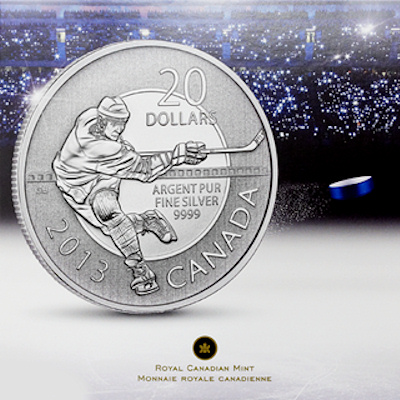 <<< Kanada - 20 CAD $20 for $20 Eishockey 2013 - 1/4 Oz Silber | |