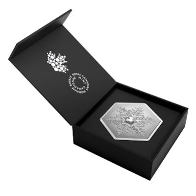 Es funkelt an einem sonnigen Wintertag und schimmert in einer kalten Mondnacht, wo auch immer ein Schneekristall landet, seine zarte Form ist ebenso ätherisch wie bezaubernd, und der Eiskristall, der auf der Rückseite dieser Münze landete, bildet da keine Ausnahme. Schneekristalle, wie der hier abgebildete Sterndendrit, sind wunderschön vielfältig und einzigartig, und die meisten von ihnen weisen sechs Spitzen oder Seiten auf. Der Umriss betont die kunstvolle Form des Schneekristalls, der auf der Rückseite Ihrer Münze eingraviert ist und mit einem funkelnden klaren Kristall übersät ist.