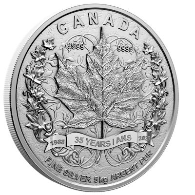 <<< Kanada - 500 CAD Maple Leaf 35 Jahre 2023 - 5 KG Silber PP | |